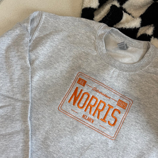 Lando Norris Silverstone 2025 Vintage License Plate Embroidered Crewneck