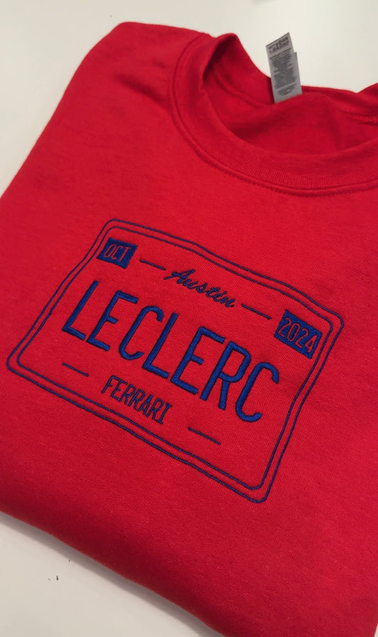 Charles Leclerc Austin 2024 Vintage License Plate Embroidered Crewneck