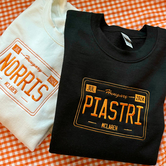 Oscar Piastri Hungary 2024 Vintage License Plate Embroidered Crewneck