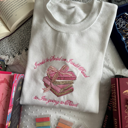 I could be Social Bookish Quote Embroidered Sweatshirt
