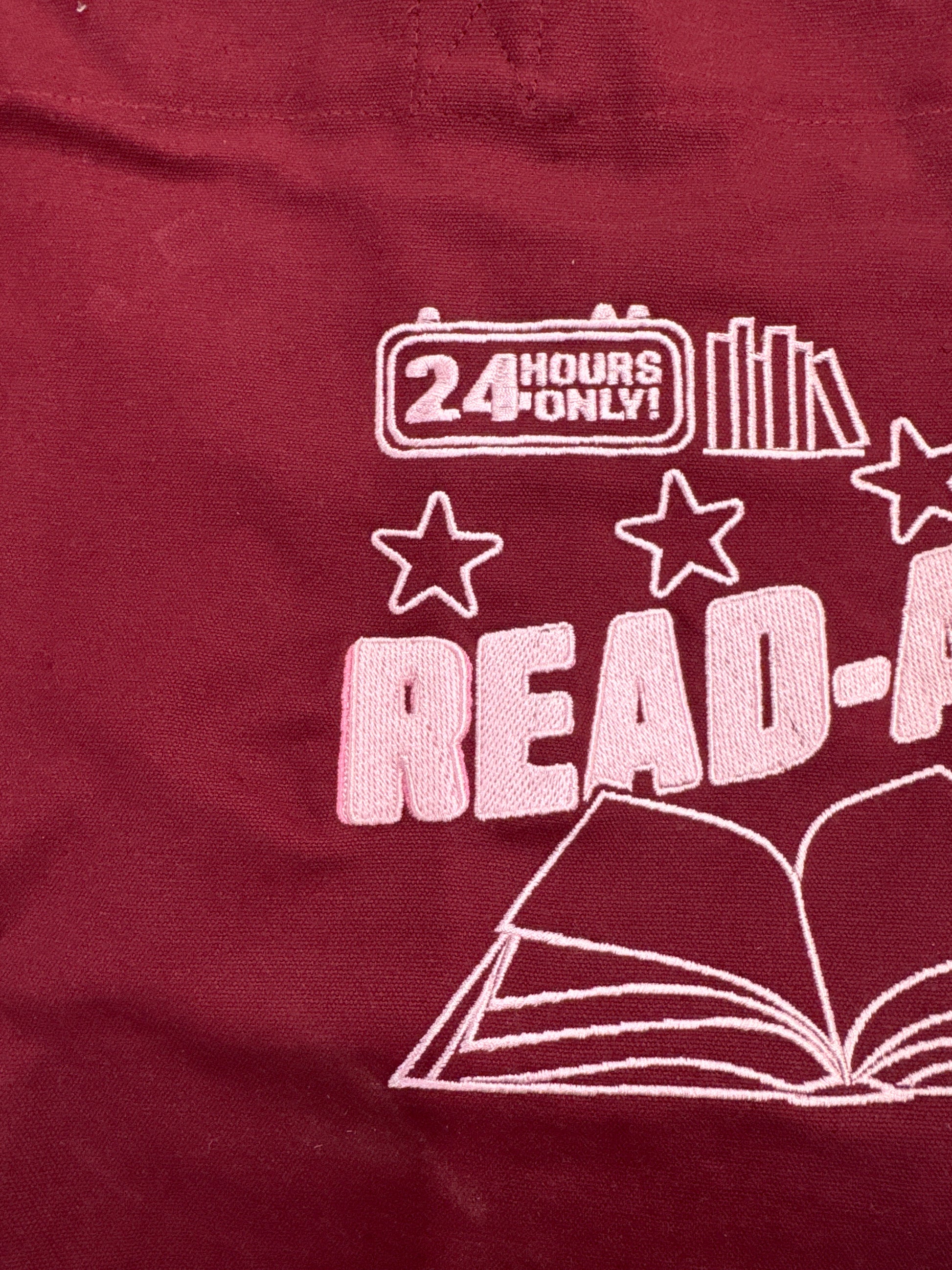 *SAMPLE SALE* Read-a-thon Embroidered Tote Bag